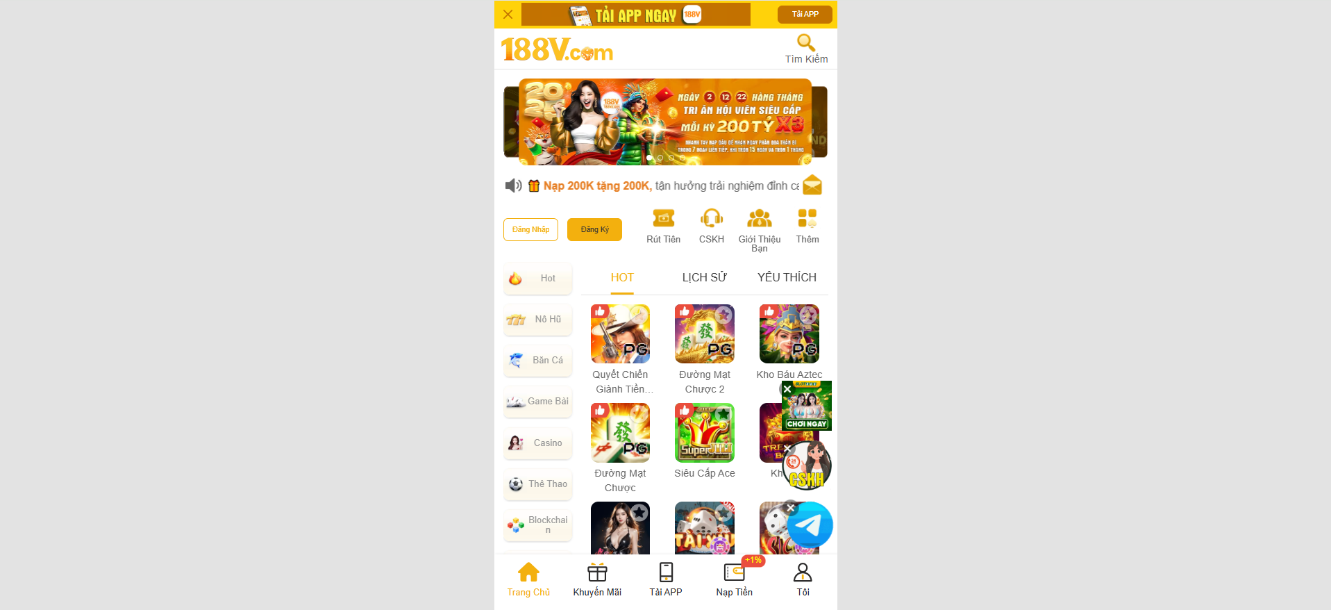 Chương trình khuyến mãi hàng ngày, hàng tuần và hàng tháng. Giá trị lên tới 28.000.000, nạp đầu tặng 100%, hoàn trả tới 3%.